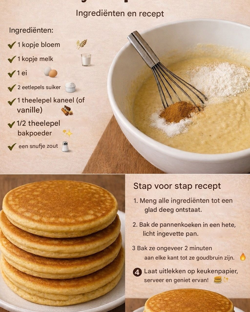 Bovendien biedt dit recept eindeloze mogelijkheden. Je kunt ze serveren met fruit, yoghurt, een beetje honing of pindakaas. Bij ons thuis zijn ze vaak al warm, rechtstreeks uit de pan, op – en dat is waarschijnlijk de beste aanbeveling.