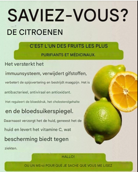 Citroen is een van 's werelds bekendste vruchten, niet alleen vanwege de zure, verfrissende smaak, maar ook vanwege de vele geneeskrachtige en culinaire eigenschappen. Al sinds de oudheid wordt de citroen gebruikt in de keuken en de natuurlijke geneeskunde, en hij blijft een waardevolle bondgenoot voor gezondheid en welzijn.