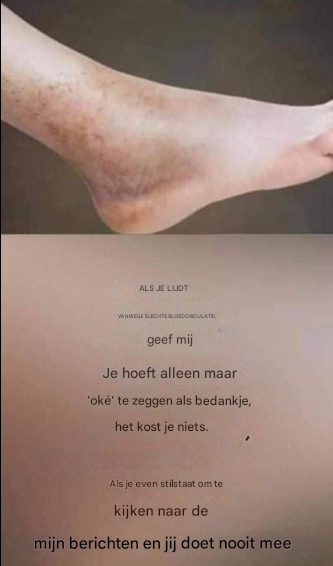Spataderen: Gezwollen en kronkelende aderen zijn vaak een teken van onvoldoende bloedtoevoer.