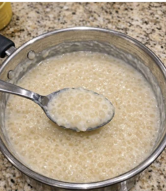 | Kleine tapiocaparels (geen instanttapioca) | ⅓ kopje | Hydrateert vóór het koken. |