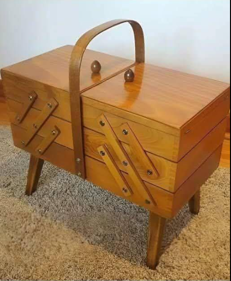 Dit esthetisch aantrekkelijke en functionele houten object roept herinneringen op aan een tijd waarin vakmanschap een belangrijke rol speelde in het dagelijks leven. Op het eerste gezicht lijkt het misschien een eenvoudige, artistiek vormgegeven doos, maar het is veel meer dan dat. Het is een opvouwbare naaidoos, een onmisbaar hulpmiddel dat vroeger in veel huizen te vinden was en het leven gemakkelijker en praktischer maakte.