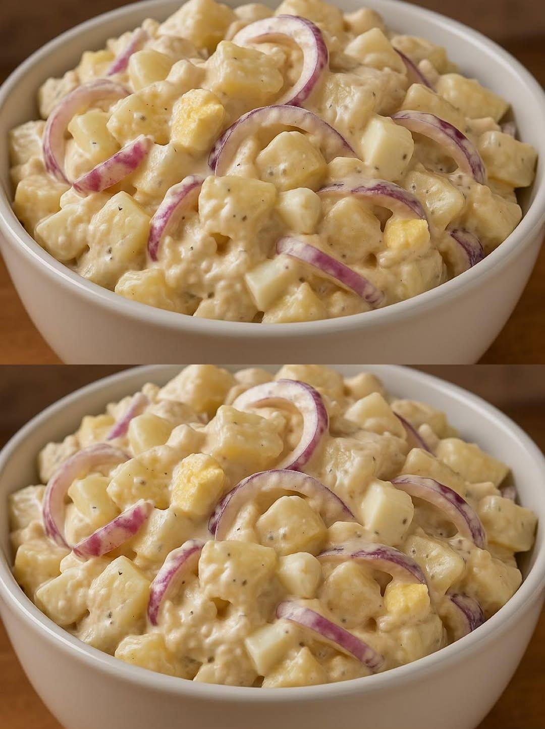 Klik op de knop "Volgende→" hieronder om verder te lezen! Was de aardappelen grondig, kook ze met schil en snijd ze na afkoeling in blokjes van ongeveer 0,5 x 0,5 cm met een in koud water gedoopt mes. Maak een saladedressing van zout, azijn en een beetje water, giet deze over de aardappelen, schud goed en laat het 1-2 uur staan.