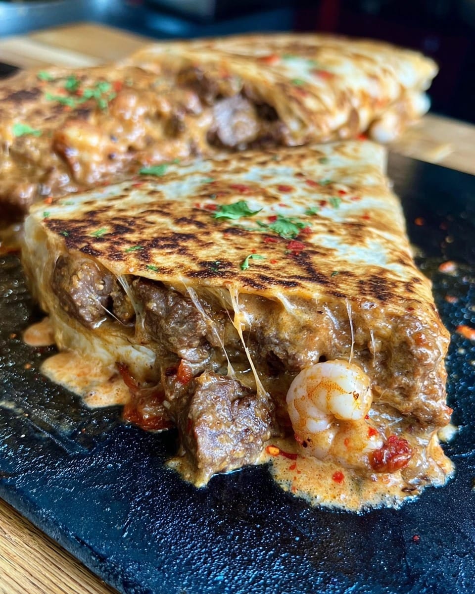 Dan is een bol, melangez les laières de steak en les crevettes avec 1 c. bij soep van olijven, de cajun-epices, de jus de citroengroen, een peu de sel en de poivre. Laissez mariner 15 tot 30 minuten op het vuur voor het bewaren van de impregnering.