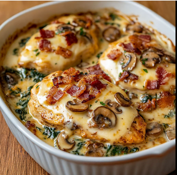 Als je op zoek bent naar een recept dat intense smaken, romige texturen en een krachtige uitstraling verspreidt, dan is deze gepocheerde kip met spinazie à la crème, pancetta en champignons het ultieme comfortfood. Het is een gerecht van restaurantkwaliteit dat je gemakkelijk thuis kunt bereiden. Als chef-kok vind ik dit recept een van de meest beperkte creaties: malse, sappige kipfilets met vloeibare spinazie à la crème, gekarameliseerde champignons, bekende pancetta en beperkte pepper jack kaas. Het is het soort gerecht dat niet alleen je honger stilt, maar ook je smaakpapillen verwent.