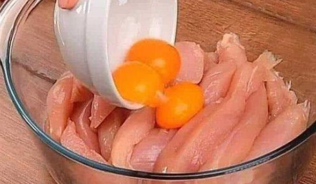 Bereiding: Kipbereiding : Snijd de kipfilets in gelijkmatige reepjes en doe ze in een kom.