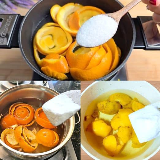 - Schillen van 3-4 sinaasappels, citroenen of een mix van citrusvruchten