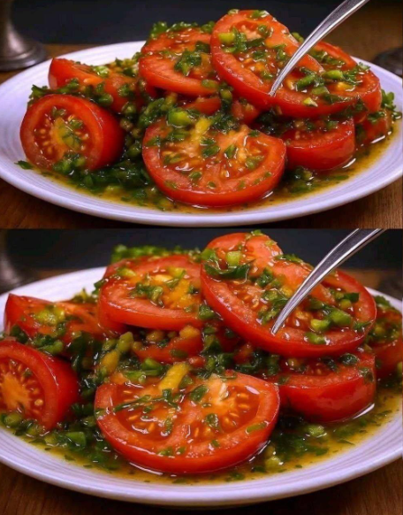 Het geheim zit hem in de marinade. In tegenstelling tot andere salades die direct worden bereid en geserveerd, vereist deze salade geduld. Die tijd in de koelkast is geen bevlieging; het is op dit moment dat de ware transformatie plaatsvindt. De tomaten nemen de smaken van de dressing op, de knoflook geeft zijn aromatische oliën af, de verse kruiden geven elke hap smaak en alle elementen komen samen in een perfect harmonieuze symfonie van smaken.
