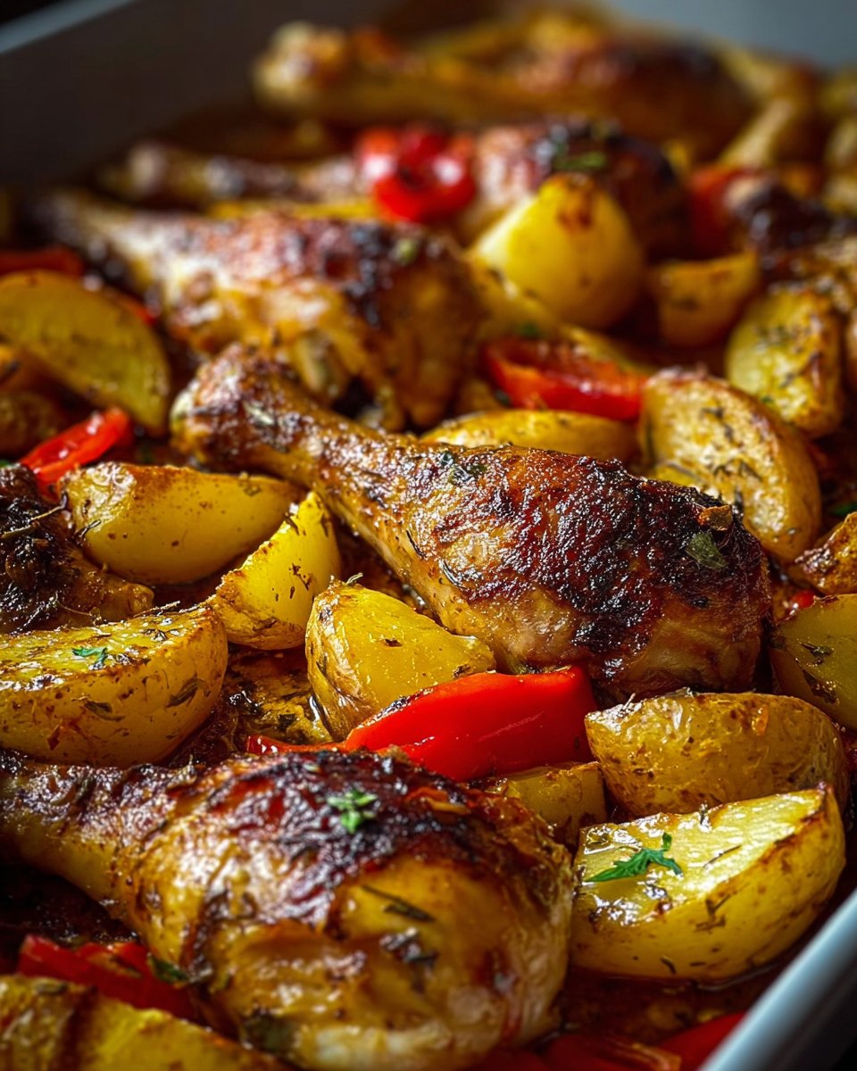 Ingrediënten: – 6-8 kippendrumsticks – 700 gram baby- of Yukon Gold-aardappelen, in vieren gesneden – 1 rode paprika, in plakjes – 1 groene paprika, in plakjes – 1 middelgrote ui, in plakjes – 3 el olijfolie – 120 ml kippenbouillon – 1 el balsamicoazijn (optioneel, voor extra diepgang) – 2 tl Italiaanse kruiden – 1 … Read more