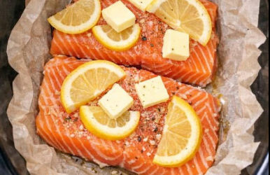 Langzaam gegaarde zalm met boter en citroen