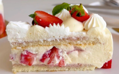 Ingrediënten voor de biscuitcake: 4 eieren (op kamertemperatuur) 120 g suiker 120 g gezeefd 00-meel Voor de vulling: 400 ml…