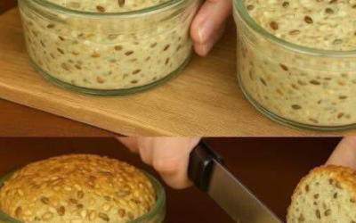 Ik eet geen witte bloem! Brood uit blik, klaar in één minuut! Zonder gist, zonder suiker. Ingrediënten: 3 eieren, 240 ml melk, 2 eetlepels lijnzaad, 2 eetlepels psylliumvezels.
