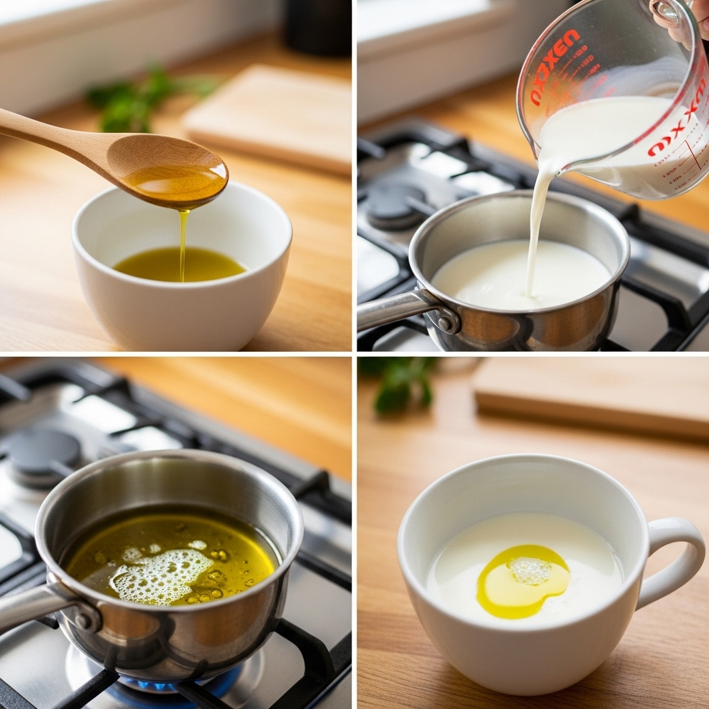 Giet olijfolie bij de melk. Ik koop het niet meer in de winkel. Makkelijk en snel.