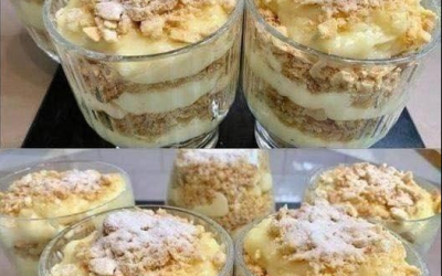 Ingrediënten: Koekjeskruimels of bladerdeeg (voldoende voor de laagjes) Suiker – 120 ml Eierdooiers – 3 Melk – 240 ml Bloem…