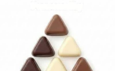 Op het eerste gezicht lijkt deze afbeelding simpel: gewoon een nette stapel driehoekige chocolaatjes in verschillende kleuren. Maar dan lees…