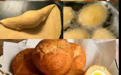 Hardgekookte eierdonuts INGREDIËNTEN: Voor 12 donuts – 12 kleine eieren – 300 g bloem – 50 g suiker – 3…
