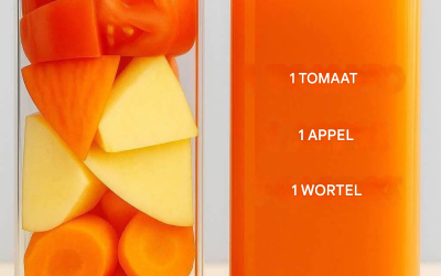 🍎Heb je je ooit afgevraagd wat er zou gebeuren als je elke ochtend tomaten-, wortel- en appelsap zou drinken?