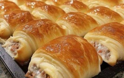 Ingrediënten: 450 gram varkensworst, 1 pakje (225 gram) roomkaas, zacht gemaakt, 2 pakjes (225 gram elk) gekoeld croissantdeeg, 1/4 theelepel…