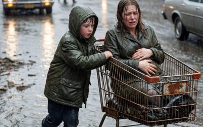 Toen auto's met hoge snelheid langs een zwangere vrouw raasden die vastzat in een ondergelopen straat, stapte een dakloze twaalfjarige jongen uit de regen om haar te helpen. Dagen later stopte er een zwarte SUV bij de gaarkeuken – en hij stond als versteend.