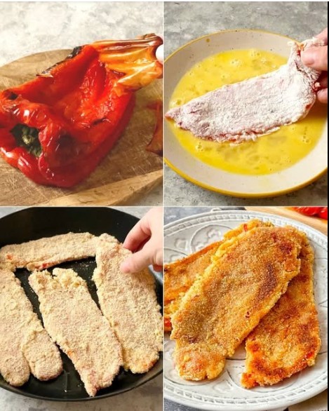 Pel de paprika's, paneer ze en bak ze in de pan! Deze schnitzels zijn heerlijk, het recept: