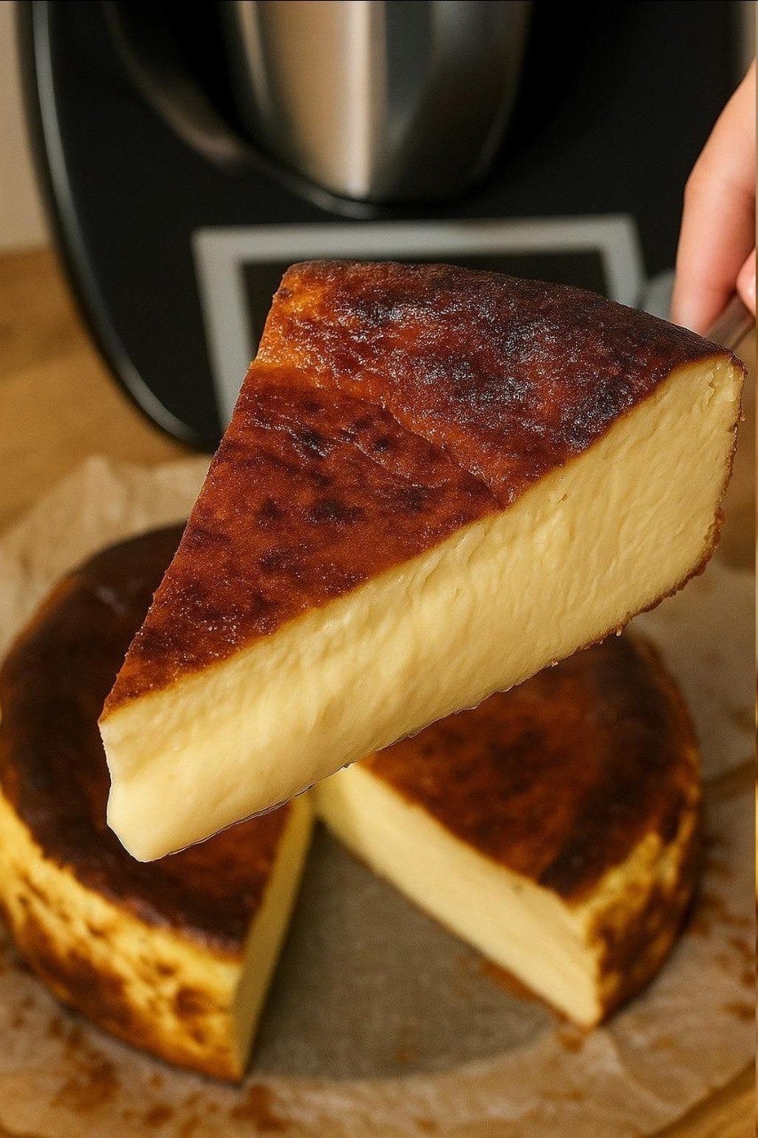 In tegenstelling tot de klassieke Amerikaanse cheesecake heeft deze Baskische variant geen koekjesbodem en wordt hij op een hoge temperatuur gebakken, waardoor de buitenkant verbrandt en karameliseert. Dit vormt een perfect contrast met de zachte en zijdezachte binnenkant.